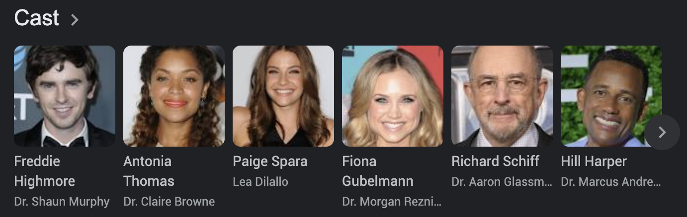 한국 드라마였던 '굿닥터'를 리메이크한 미국드라마로 2017년 9월부터 ABC방송사에서 방영되었다고 한다. 자폐증과 서번트 증후군을 앓고 있는 천재 외과의사가 주인공인 작품으로 한국에서도 꽤 인기를 모았던 드라마였다. 한국에서는 '주원'이 주인공역할을 맡았는데 개인적으로 미드버전의 프레디하이모어가 훨씬 역할에 어울린다는 느낌을 받았다. 표정이나 제스처등이 프레디 하이모어가 더욱더 사실적이고 현실감 있게 연기했기 때문이다. 배우의 외모 역시 모든 상황에 프레디하이모어가 더 어울린다는 느낌이었다. (천재소년의 느낌이 더 살아있다고 해야 하나) 현재 시즌6을 방영중일정도로 미국 내에서도 인기가 많은 의학드라마이다.