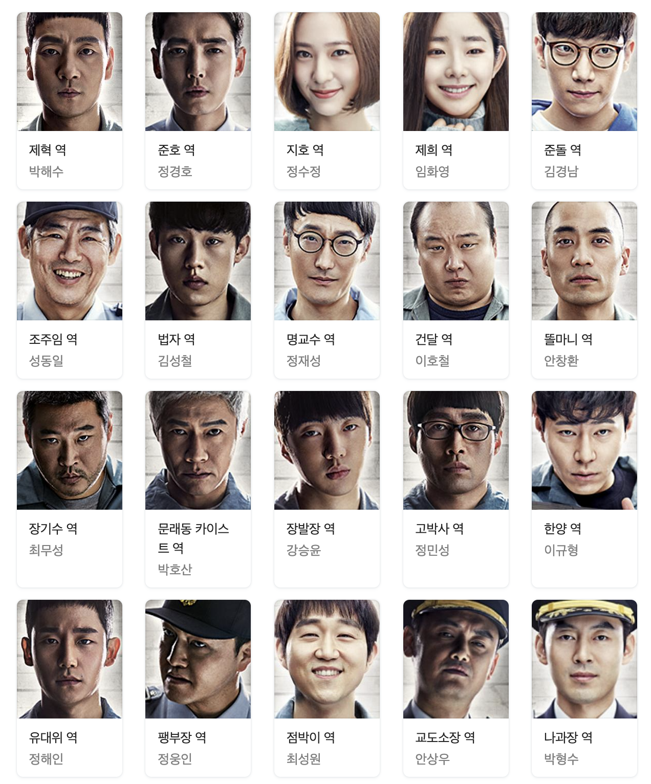 교도소가 배경이라그런가 출연자들 표정이 다 무섭다